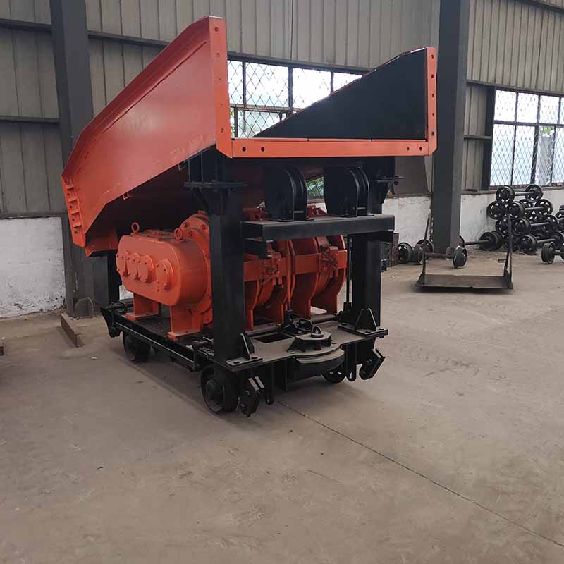 臺車:承載整個(gè)設(shè)備的重量,同時(shí)為絞車、操縱結(jié)構(gòu)等部件提供安裝基礎(chǔ)。臺車底部安裝有行走輪,便于在軌道上移動(dòng),實(shí)現(xiàn)裝巖機(jī)在巷道內(nèi)的靈活作業(yè)。